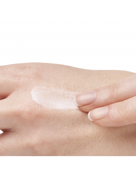 - Nach dem Auftragen mit zwei Fingern andrücken und gleichzeitig die Haut sanft zu den Seiten ziehen, bis das Produkt eingezogen ist.