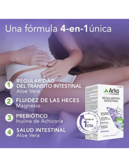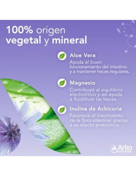 Mit einer einzigartigen Kombination aus natürlichen osmotischen Abführmitteln und vier sich ergänzenden Wirkungen garantiert Ihnen dieses Nahrungsergänzungsmittel nicht nur eine regelmäßige Darmtätigkeit, sondern auch einen optimalen Elektrolythaushalt dank Magnesium, eine Stärkung Ihrer Darmflora durch Chicorée und vor allem eine lang anhaltende Linderung für Ihr Darmwohlbefinden mit der Kraft der Aloe Vera.