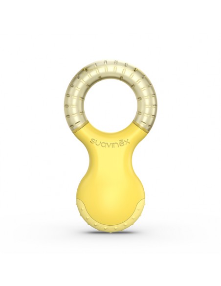 Der Suavinex-Beißring ist aus lebensmittelechtem Soft-Touch-Silikon hergestellt, das leicht und flexibel ist. Er ist ergonomisch geformt, damit die kleinen Hände Ihres Kindes ihn gut greifen können. Er ist für die ulnar-palmaren Entwicklung konzipiert.