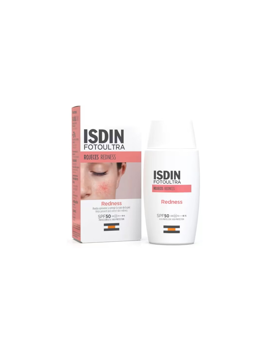 Isdin Fotoultra Redness SPF50 ist ein Sonnenschutzmittel für das Gesicht mit SPF 50 PA ++++ & HE-VL.