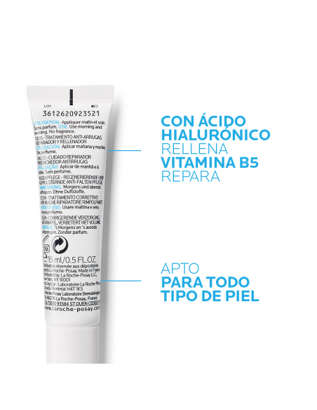 Formulated with two types of hyaluronic acid and vitamin B5 to fill and repair the skin in this delicate area.