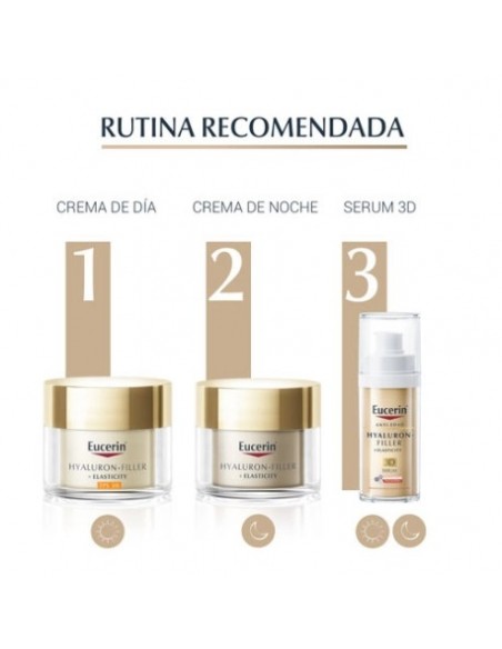 Eucerin Elsticity + Filler Crema De Noche 50 ml. Farmacheca te recomienda aplicar por la noche sobre la piel del rostro, cuello y escote, limpia y seca. Realizar suaves golpes con los dedos y movimientos hacia arriba para extender el producto.