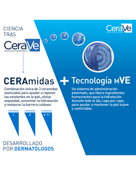 - Contiene niacinamida y vitamina E para aliviar la piel y 3 ceramidas esenciales (1, 3, 6-II).