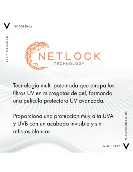 Protector solar SPF 50+ con activos antiedad, ideal para uso diario.