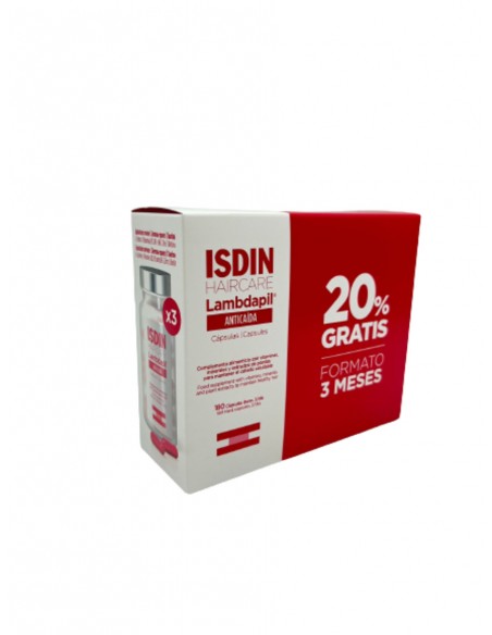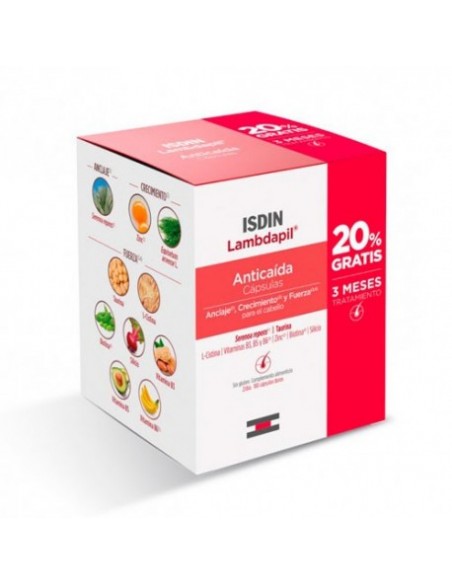 Isdin Lambdapil Anti-queda 180 caps. Suplemento alimentar que previne a queda excessiva do cabelo e o mantém saudável. Promove o crescimento do cabelo e fornece nutrientes essenciais. Previne a regressão do folículo capilar e reduz a secreção sebácea. Benefícios;