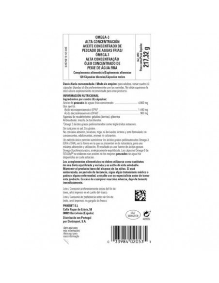 Suplemento alimentar que fornece ao organismo uma grande quantidade de ómega 3, graças à sua alta concentração de óleo de peixe.